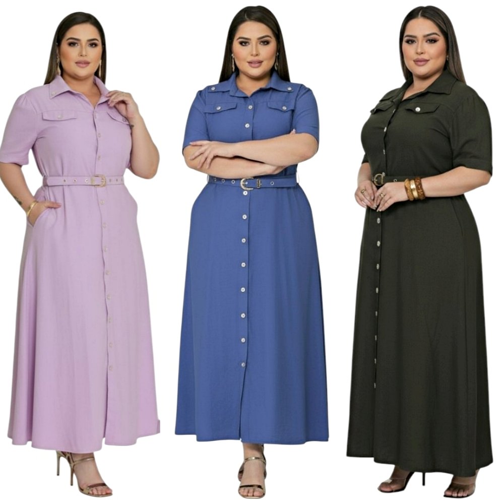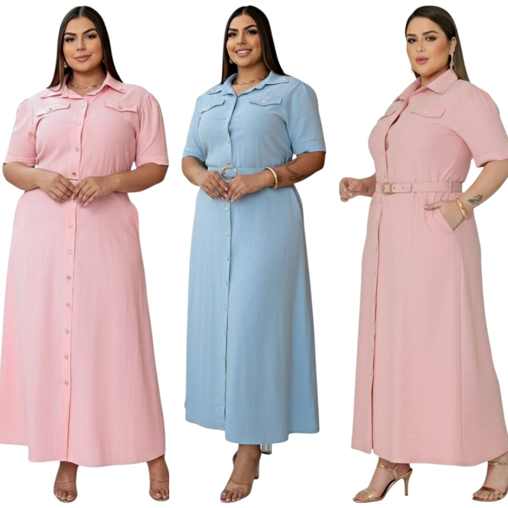 Vestido Evangélico Longo Plus Size Alfaiataria Botões Cinto